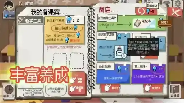 2、游戏课程和教具是伪sl,即你每天选择的课程,课程里可选的教具,教案里刷新的教具都是固定的。如果教具不好,可适当读档放弃。