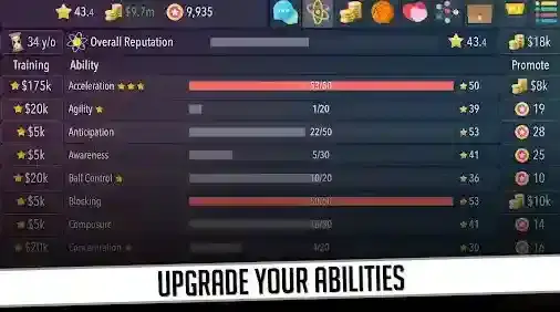 积累经验,提升适合你比赛风格的技能。你可以专注于进攻技巧,成为得分王;也可以专注于防守,成为防守悍将?
