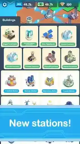 电力大亨2(Idle Energy Tycoon),一款模拟电力系统的休闲经营类手游。游戏中大家可以通过购买土地来解锁各种发电厂,例如风力发电、水力发电、火力发电等等,建造好传输线即可为总部运输源源不断的电力,从而获得丰富的收益。