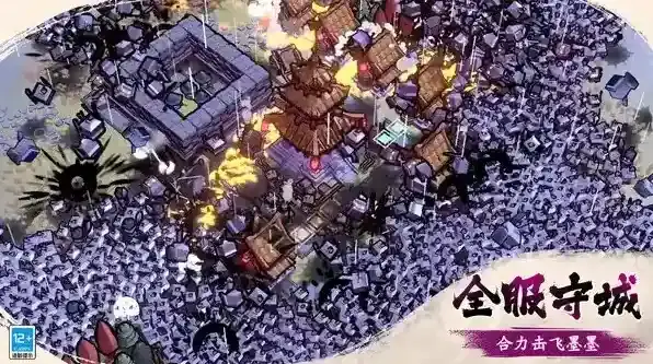 1、采用数字水墨绘画技术,还原传统山水画 勾、皴、点、染 的笔墨技法,城池楼宇、山水林木、士兵敌军均以水墨笔触呈现,搭配散点透视的场景设计,营造出 如入古画 的沉浸式视觉体验。墨水方块造型的敌军设计兼具趣味与国风辨识度,爆笑方言配音点缀其中,让严肃的守城题材更添 幽墨 韵味,风格自成一派。