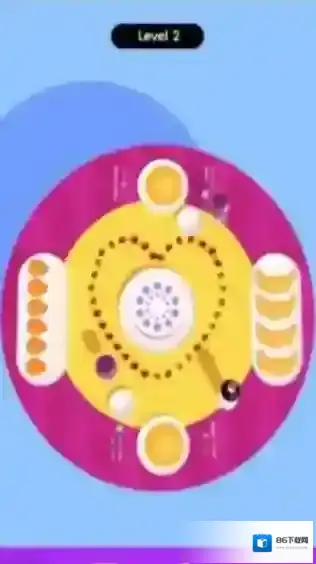 3、画面呈现圆形餐桌及各类餐具、餐食摆盘,玩法围绕按关卡要求布置餐桌、摆放餐品等展开,属于模拟布置体验。