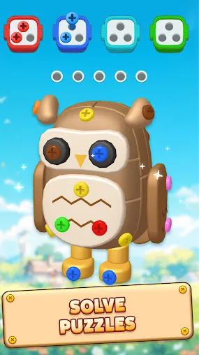 1、玩法十分简单,通过点击螺丝即可将其放入上方对应颜色的盒子中。