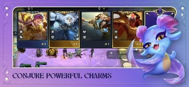 独立出来的游戏,原汁原味还原电脑上的英雄联盟云顶之弈模式,游戏有着丰富的精美卡牌,有着专属的独特技能,玩家需要策略选择,合理搭配阵容,获胜关键是在合理的战术策略下从随机化的英雄池中选择最佳的英雄阵容,用装备对阵容进行强化,并构架优势对战阵型。