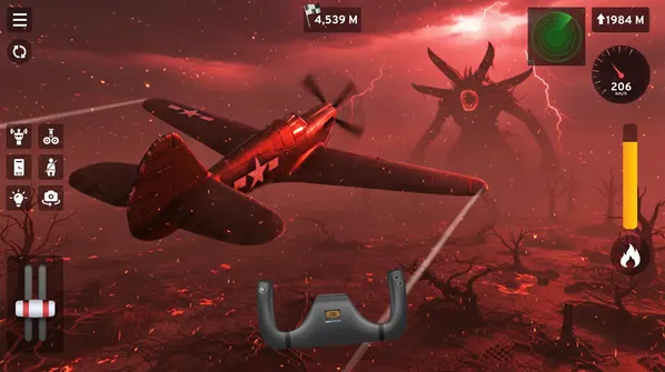 2、接着玩法非常的简单右手边的摇杆是用来控制飞机的移动而左手边的是让飞机加速的机器;