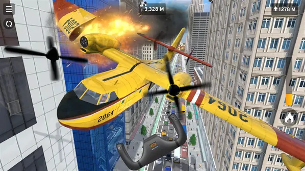 3、你可以在这个场景中不断的破坏各种建筑物,但是要小心飞机的损坏度。