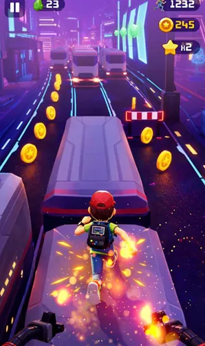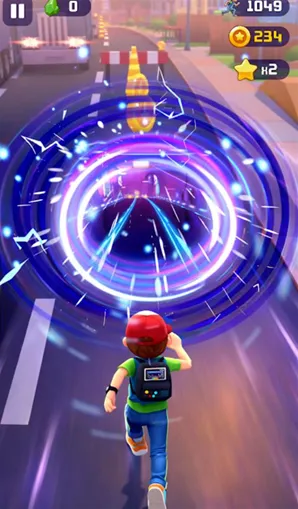 你将在游戏中控制自己的角色来完成不同的挑战,控制你的角色躲避各种障碍物来收集更多的金币,利用途中的道具帮助自己躲避障碍获得更高的分数,进入不同的传送门前往不同的地点,不断获得更高的分数体验全新的跑酷冒险吧。