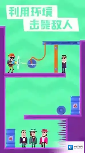 2、合理利用场景中的反弹墙面,通过折射让子弹击中多个敌人。