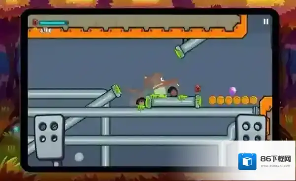 2、驾驶蓝色拖车,借虚拟按键控方向、平衡,过起伏地形,留意金币(6735起),避仙人掌等障碍。