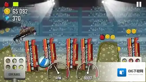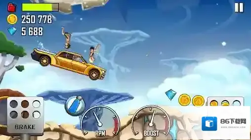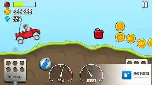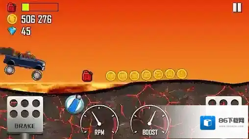 整个屏幕当中就只有两个操控按键,一个是加速按键,一个是刹车按键,但是在游戏当中你需要控制好这两个按键来以确保它的平衡性,不然会使得车翻过去导致游戏的失败。所以还是比较考验玩家的操作能力的。