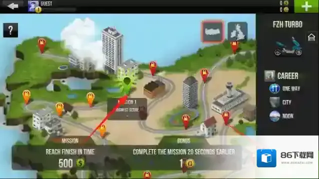 3、比赛结束后用奖励金币升级摩托部件,参与排位赛提升车手等级,解锁更多地图与车型,还可加入俱乐部与其他玩家组队挑战全球排行榜。
