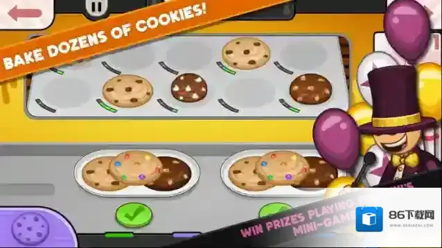 4、根据屏幕右侧显示的菜单,首先选择制作饼干。选择好饼干的种类后,别忘了为饼干添加上顾客喜欢的配料。