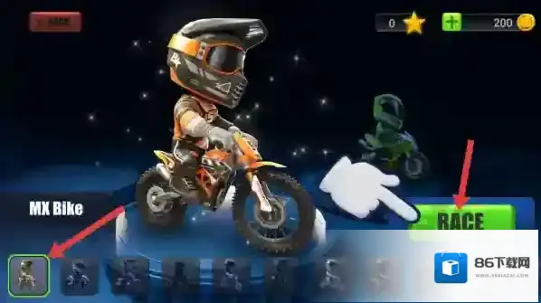 3、自定义装扮系统:可更换骑手的头盔、服饰与摩托车贴纸,打造个性化外观,还能为车辆喷涂渐变色彩与反光特效。