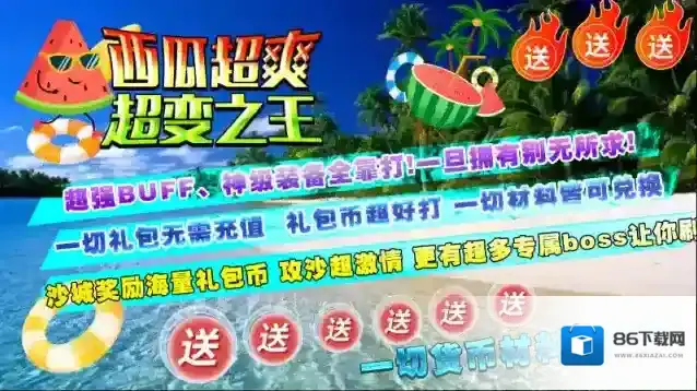 西瓜超爽超变之王,195神器超变版本,上线直接免费获得群体切割、自动回收等超爽功能!本服没有卡点、秒下大陆,无秒杀BUFE,属性平衡,散人也可超神,花时间直接变大哥!游戏内所有的货币全部可以通过打怪获得,一切货币材料刷到爆!亿万切割、亿万血量、亿万攻击、千倍爆率等超爽数值任你体验,人人皆可超神!