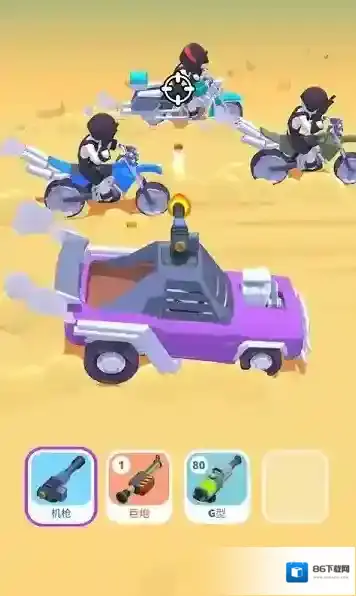 2、实时战术对抗:支持8人联机对战,可拾取EMP干扰、防护罩等战术道具,通过“漂移规避+回身射击”连招压制对手,上演公路武装混战。