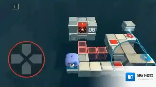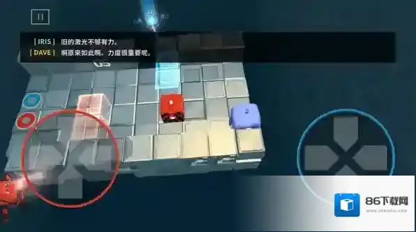 3、进入关卡后左边是控制红色机器人移动的摇杆,右边是控制蓝色机器人移动的摇杆。