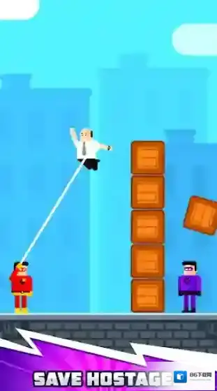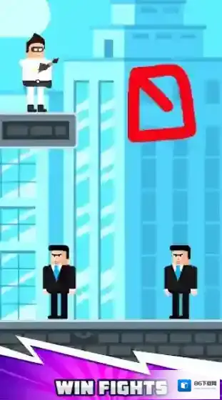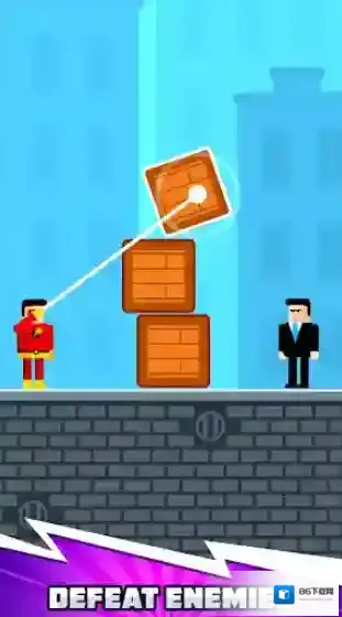 2、开始关卡挑战后,根据英雄的超能力来进行操作,例如这位就可以通过拖动屏幕来划线,从而发射武器。