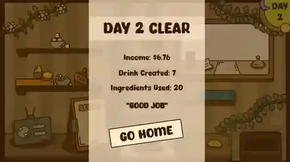 4、当完成所有的订单后就会结束一天,此时玩家可以消耗金币来解锁更多的配料去制作饮品。