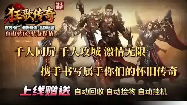 狂歌传奇,180特色双职业火龙版本,保留火龙服原汁原味的经典玩法,还加入了众多创新的新玩法和BUFF、天赋等,可以带给你前所未有的畅爽体验!58满赞助、198冠名,再无其他的隐藏消费,主打一个丝滑体验,散人玩家也能追梦,老板更是激情无限!本服装备、材料全靠打,玩法多样激情够爽,花时间你也可以逆袭!