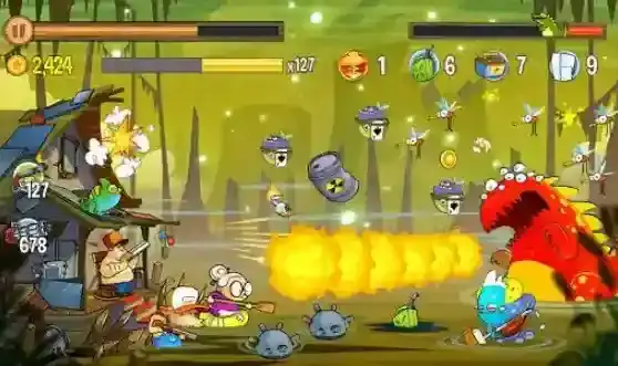 沼泽激战(Swamp Attack),充满了美式夸张风格的一款2D横版射击塔防游戏。游戏中的主人公生活在一片森林中,在他的小木屋周围有一片沼泽,沼泽中有着许多动物,随时都准备来围攻小木屋,玩家需要扮演主人公,拿起手中的枪械来保护小木屋,守住自己的领地!游戏诙谐幽默的风格正是吸引人的特色之一,例如主角虽然深陷包围,却也是从容的坐在小板凳上悠闲打靶,而且手持各种武器还会出现不同的呆萌表情,非常的有趣。游戏内有着丰富的关卡可以去挑战,并随着挑战还能用金币去升级武器提升战力,迎接更多的挑战!